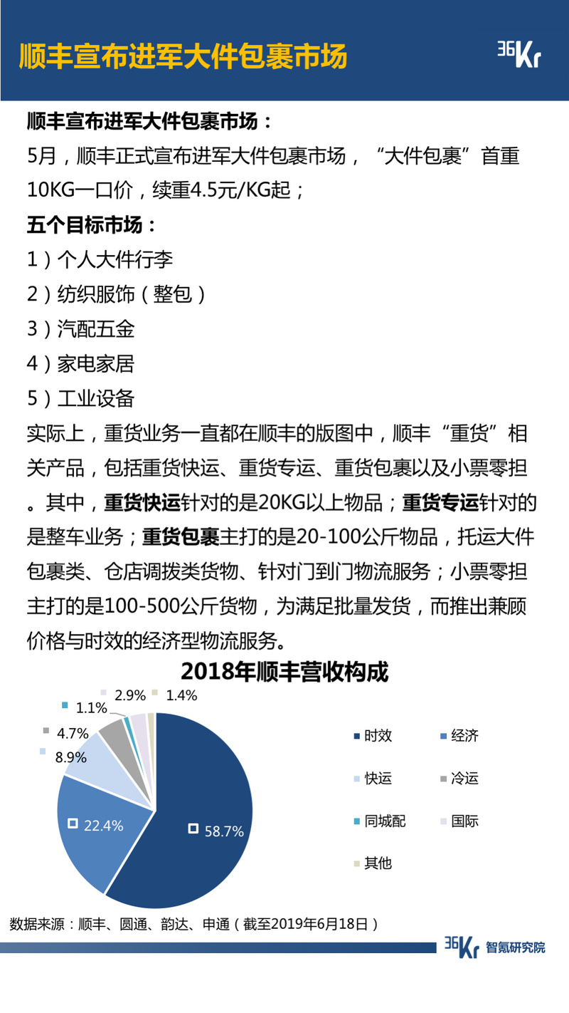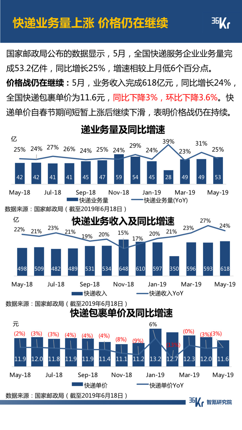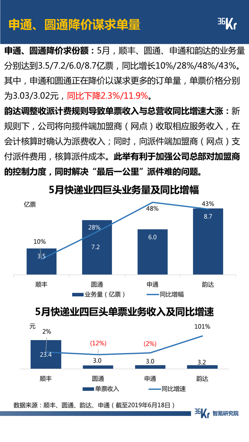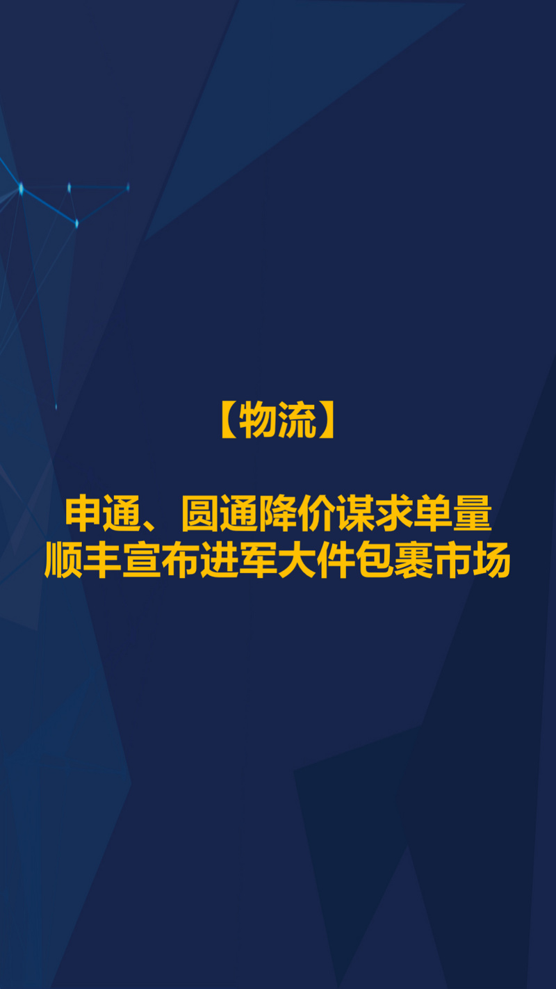 物流方面,价格战仍在继续。其中,顺丰宣布进军大件包裹市场;申通、圆通正在降价以谋求更多的订单量。