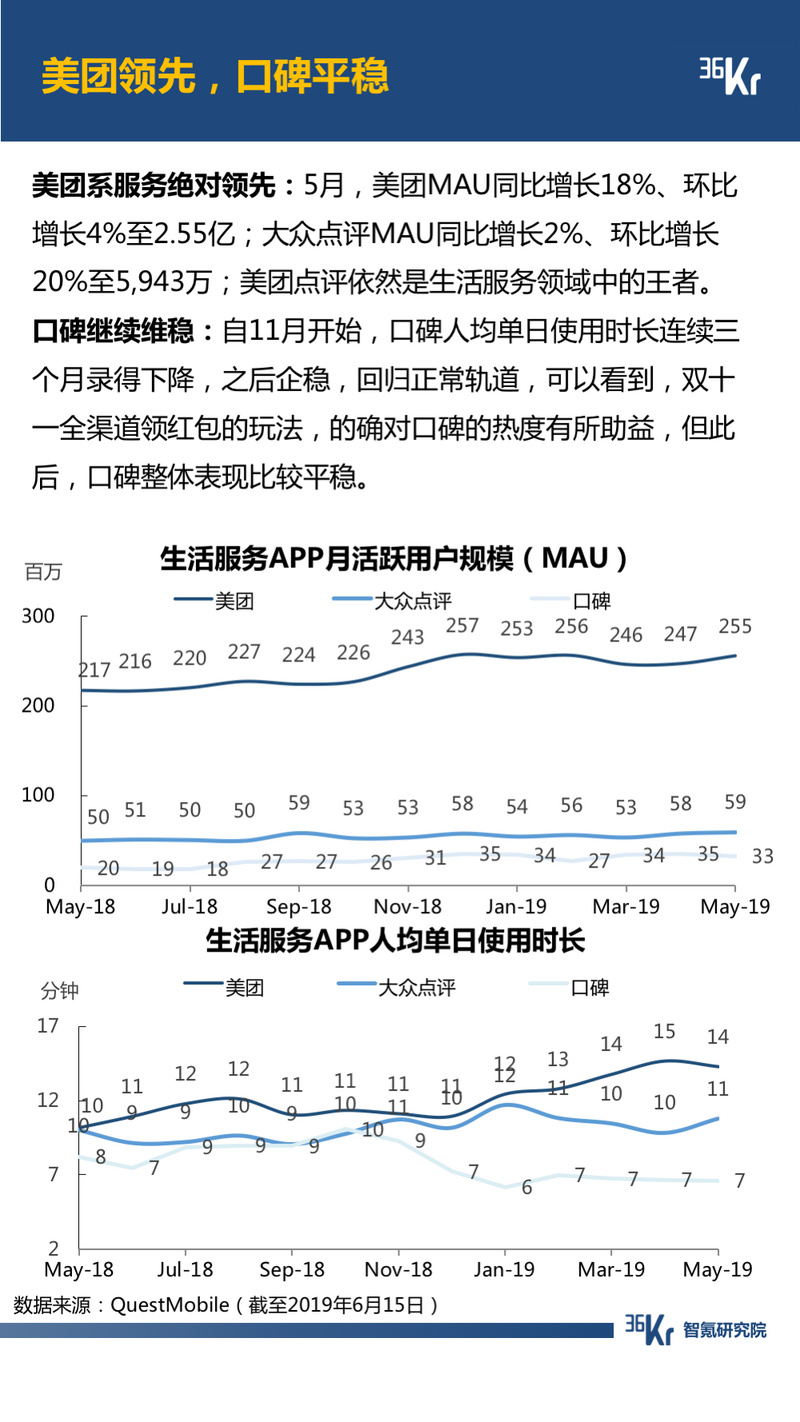 生活服务行业,美团系服务绝对领先,口碑继续维稳。而搜索浏览方面,百度红包带来的繁荣未能保持,手机百度已重回正常轨道。