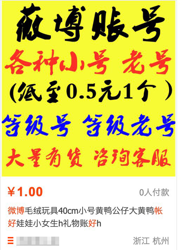 微博小号每个售卖1元至1.5元不等,批发可打七折。