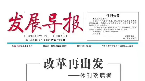 今天,发展导报、三晋都市报相继挂出停刊公告宣告休刊。