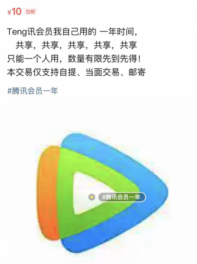 二手卖家出售共享会员账号。