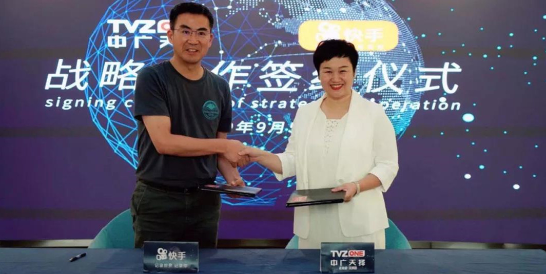 9月5日,北京快手科技有限公司与中广天择传媒股份有限公司(股票代码603721)签署战略合作协议,中广天择在其全国广电合作体系“千台一网”的基础上,打造“千号一网”,集体入驻快手平台,助力广电媒体融合发展。