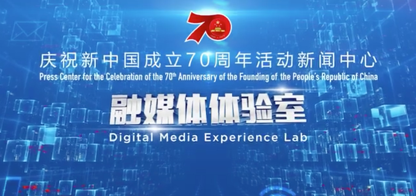 融媒体体验室占地200多平方米,记者可在此观看基于5G网络传输的4K、8K超高清电视画面,通过MR系列产品《“筑”福》360度体验新中国7项标志性工程,通过三维、立体交互产品《我“兴”飞翔》对北京大兴国际机场进行全景式探索,还可以走进可视化“媒体博物馆”,点击可触控四面屏、电子阅报栏等进行数字阅读,也可以与“小融”机器人互动,获悉与庆祝活动相关的最新信息。