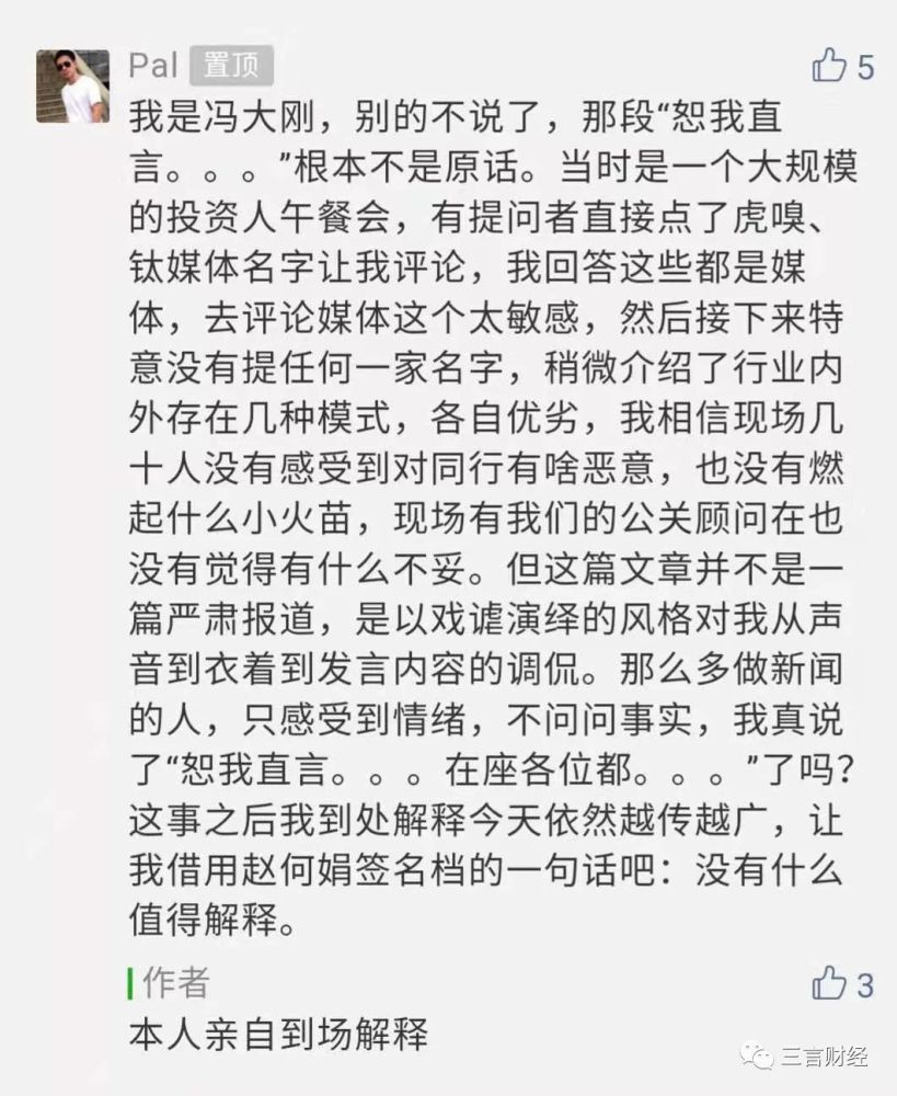 三言财经消息,昨日,36氪CEO冯大刚在“扯氮集”公众号下留言,回应此前“评论媒体同行”的言论。