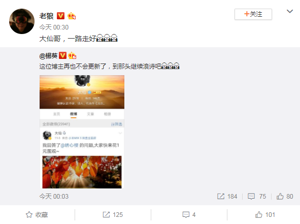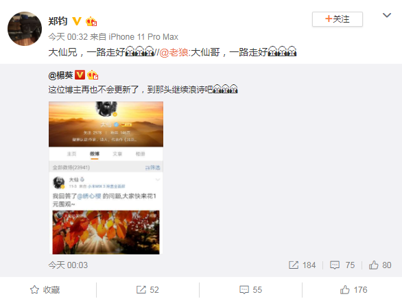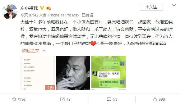 左小祖咒:大仙十年多年前和我住在一个小区有四五年,经常喝酒我们一起回家,他喝酒纯粹,酒量也大,酒风也好,做人随和,乐于助人,诗文幽默,平安夜快过去的时候,我在旅途中惊闻仙哥突然离世,无比悲痛的心情一直持续到现在,作为诗人的仙哥60岁早逝,一生爱自己的诗歌。