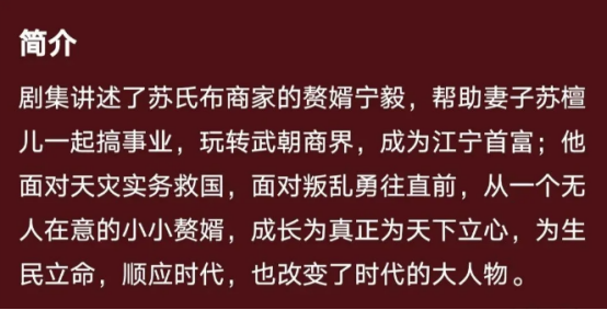 《赘婿》传播上做得好,更重要的是 产品实际内容与传播话术是匹配的。 网友都是长了眼睛的,如果光是说得好听,播出还是跟原著一个尿性,会被大众骂的更惨,从刚播的几集中我们确实能看到,剧集内容和“男频爽文”原著天差地别。