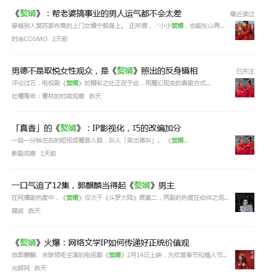 《赘婿》使用了大量媒体渠道,来做非剧情和演员的行业性讨论。也就是说,很多文章的内容是偏深度的,是讨论专业性内容的。换句话说,就是C端用户应该不爱看的。
