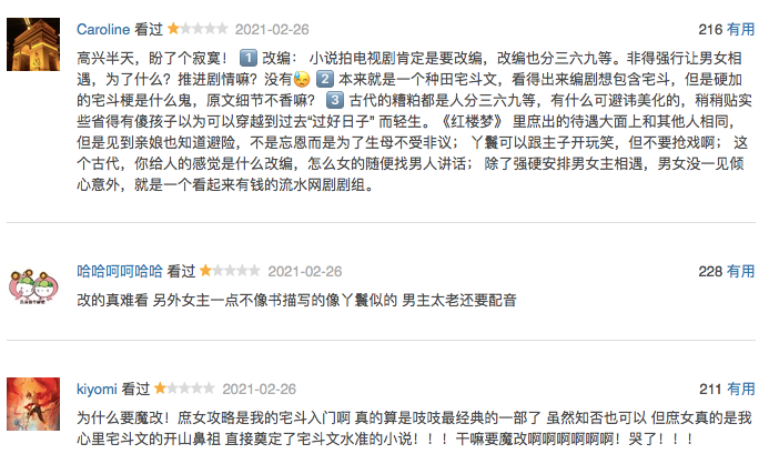 可正如网友所言,“原本是个靠谱的IP,硬生生被不靠谱的团队毁了。”未免有些可惜。不是每一部“宅斗剧”,都可以成为《知否》。
