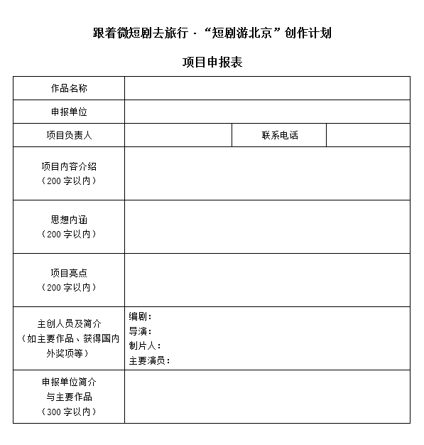 附件:《跟着微短剧去旅行·“短剧游北京”创作计划项目申报表》