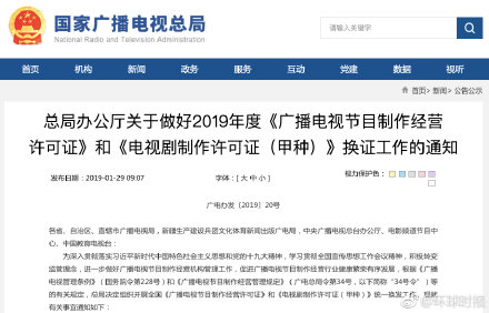 其次是配合《广播电视行业统计管理规定》的发布,在2019年度《广播电视节目制作经营许可证》和《电视剧制作许可证(甲种)》换证工作的通知中,明确指出参与买卖收视率或参与收视率造假的机构,将不予换发《广播电视节目制作经营许可证》,并撤销其节目制作经营许可。