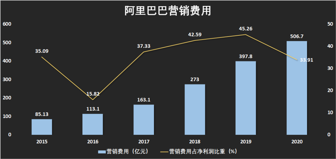 阿里的主要营收,依赖国内零售业务中来自商家的营销和佣金收入。在2020财年中,国内零售营收是3327.5亿元,占阿里总营收的65.28%。这也是阿里重大转折的起点。