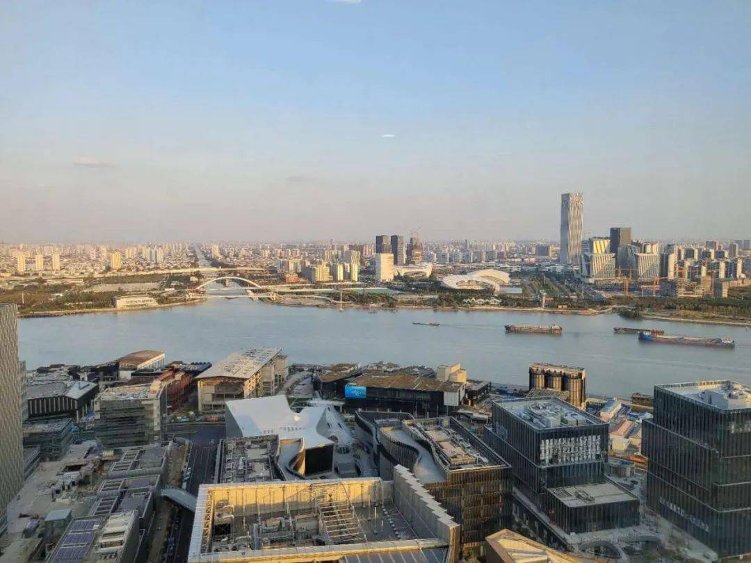 站在上海国际传媒港的F1 大楼,从36 层向窗外远看,穿行于市中心的黄浦江尽收眼底,黄浦江对岸的浦东也一览无余。