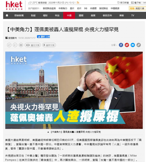 11月7日至11月19日,中央广播电视总台“看台海”新媒体平台连续发布《历史昭示未来 事实从未改变》《看卖身求荣的民进党当局如何见风使舵》《一派胡言的蓬佩奥还能蹦跶到几时?》《顽固“台独”分子必将遭到严厉惩处》等四篇“总台海峡时评”,重磅出击,给“台独”以极大震慑!系列评论充分揭露民进党当局见风使舵、卖身求荣的丑恶面目,有力批驳某些美国政客妄图搅乱台海、分裂中国、遏制中国的狼子野心。评论重申,大陆和台湾同属一个中国的事实从未改变,民族复兴、祖国统一,是包括台湾同胞在内的全体中华儿女的共同责任。严正警告一切“台独”分子,若执迷不悟、顽抗到底,必将受到两岸人民的共同谴责和法律的严厉惩处。