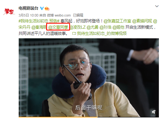 网视互联注意到,3月份,《装台》在发布预告片时,官微还特意艾特了文章,而且预告片里也确实出现了文章的镜头。从剧情来看,文章似乎饰演了一位导演。