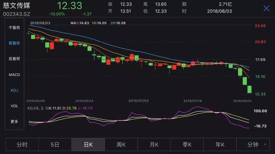 截止8月3日,慈文临近收盘跌停板被封死,以12.33元/股的价格收盘,这是最近 2个月以来,慈文股价第三次警报,也是年内新低。