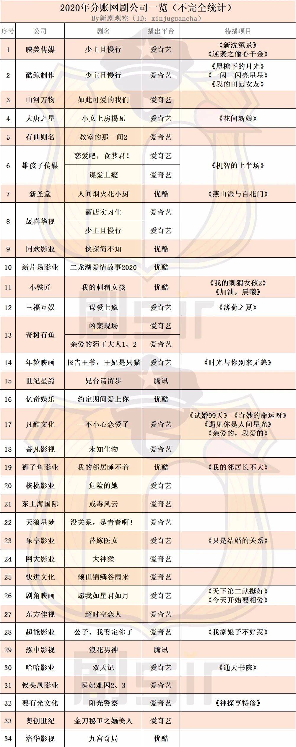 在表格中,剧sir还整理了部分公司已官宣的待播项目,此为不完全统计,具体项目情况以实际播出为准。