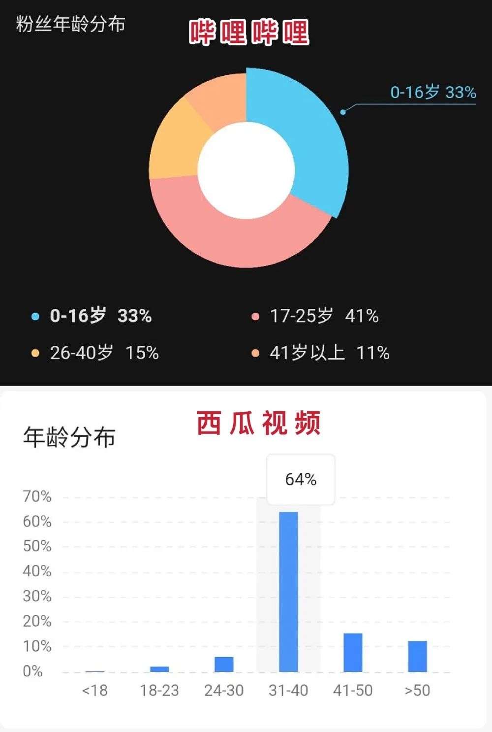 对这种情况,他分析是因为受众不同,“西瓜视频上好像要么是小学生,要么是40、50年龄段的人,不在我的用户范围内。”