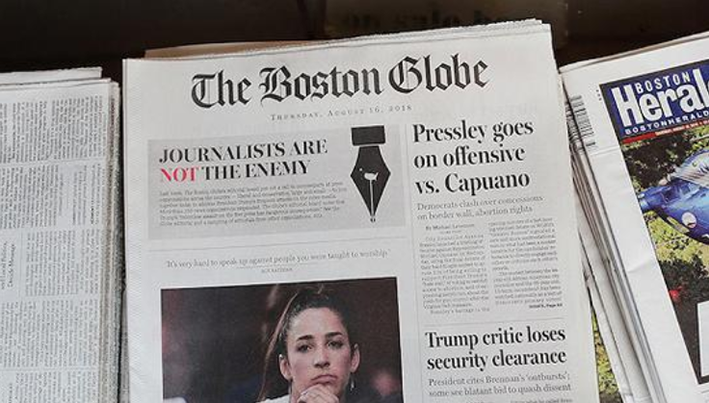 美联社称,由于特朗普一再抨击媒体报道为“假新闻”,甚至将新闻记者称作“人民的敌人”,美国《波士顿环球报》牵头发起了一场反击特朗普“对自由媒体发起的肮脏战争”、呼吁媒体团结起来维护新闻自由的运动,号召全国媒体于16日独立发表社论,对特朗普进行反击。