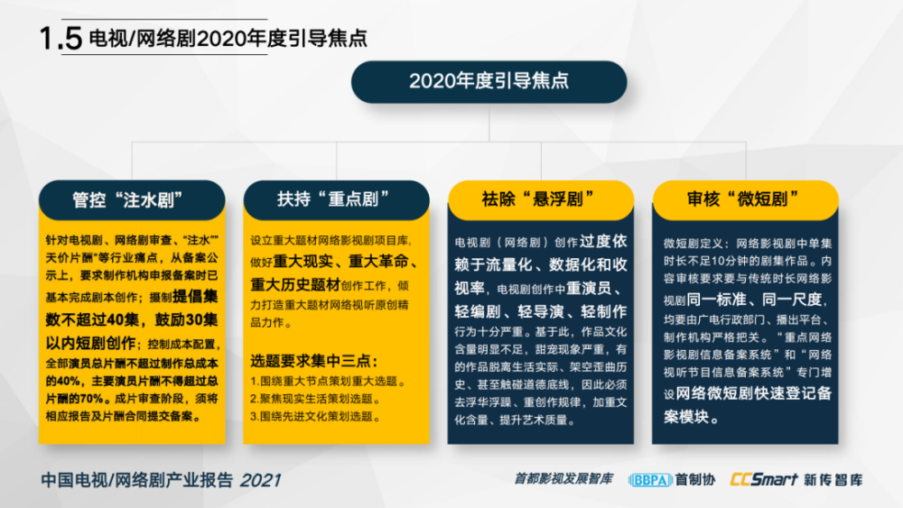 报告就电视/网络剧行业导向与治理、生产与创作、播出情况及发展态势做系统梳理,引路行业发展。