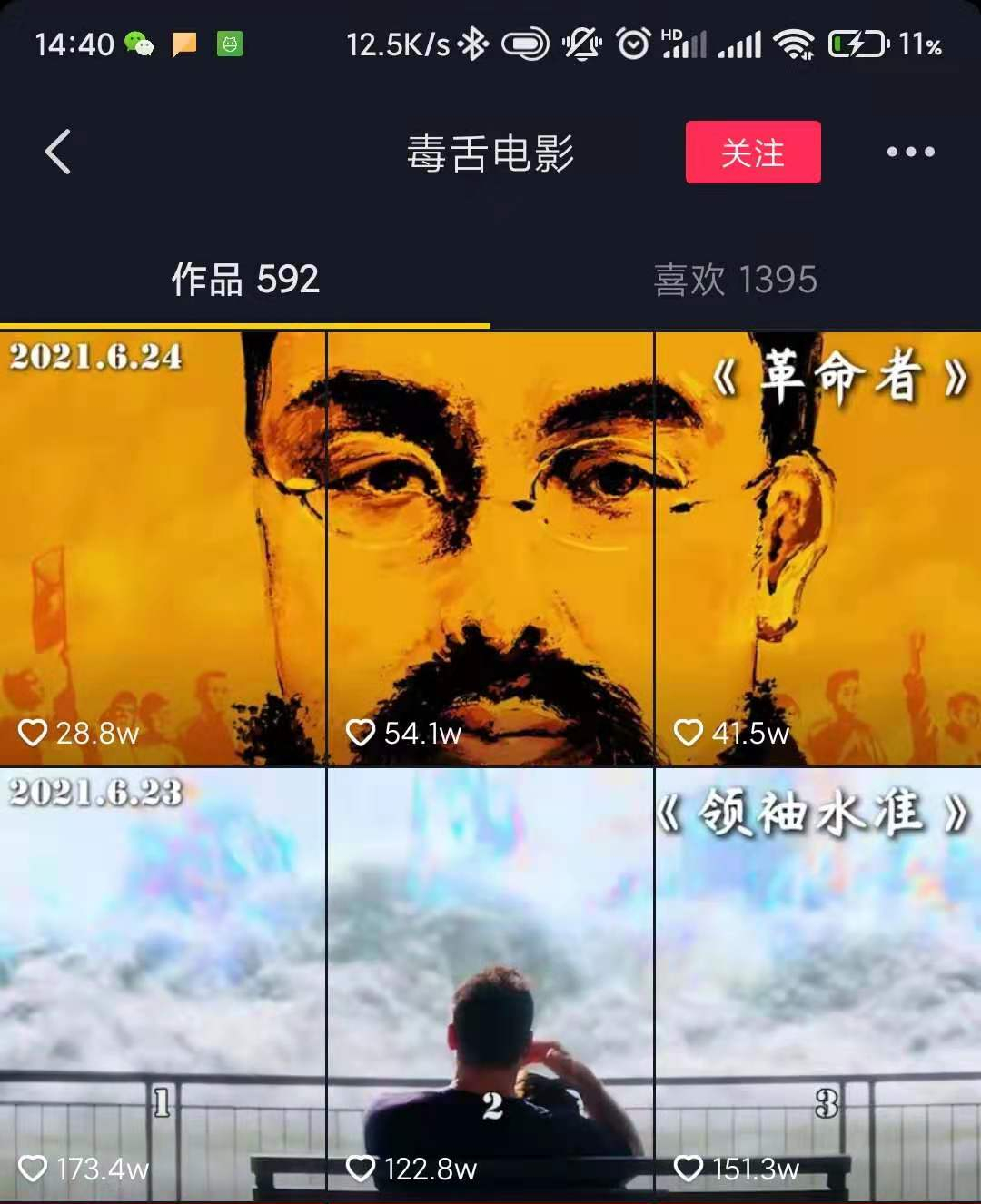 3、影评类短视频。其主要表现为通过对影视作品的片段(包括正片、预告片、花絮等)进行剪辑和拼接,并加入自己的配音或字幕进行评论,在几分钟的时间内浓缩一部影视作品的主体剧情结构,并表达个人观看后的褒贬评价。