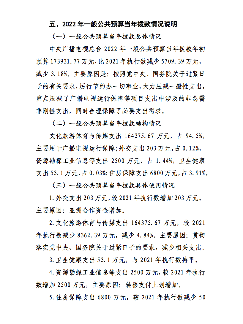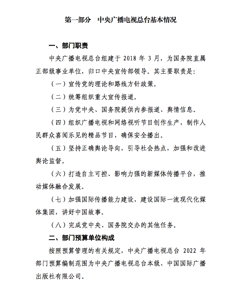 日前,中央广播电视总台公布2022年部门预算。