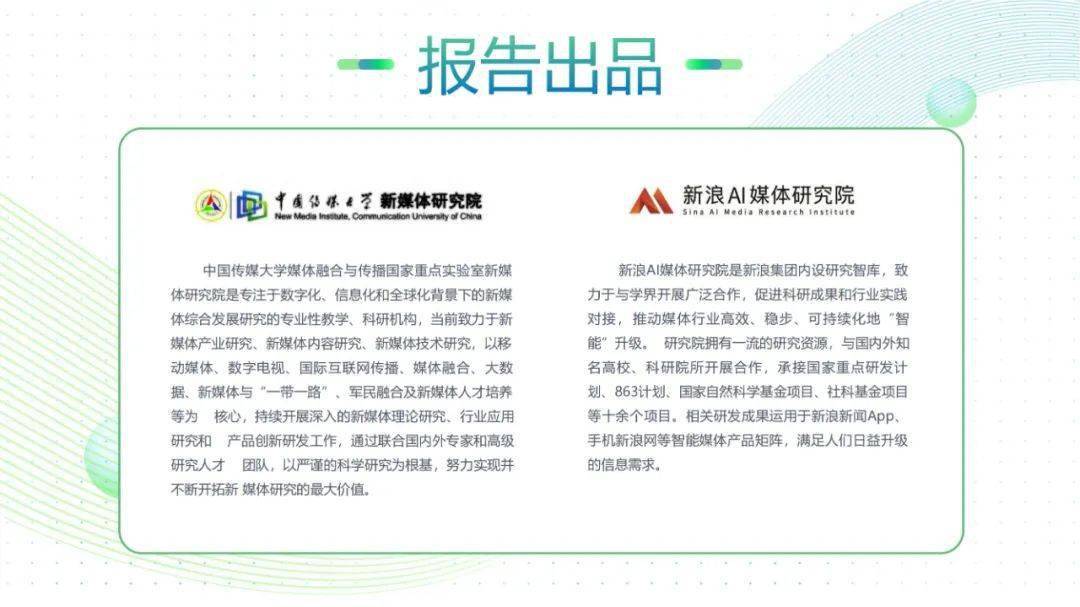 近日,中国传媒大学媒体融合与传播国家重点实验室新媒体研究院与新浪AI媒体研究院联合发布《中国智能媒体发展报告(2021-2022)》。报告忠实记录了中国智媒发展风雨历程,解析中国智媒发展突围之路,深入挖掘中国智媒案例经验,共同见证中国智媒的创新力量和无限潜能。