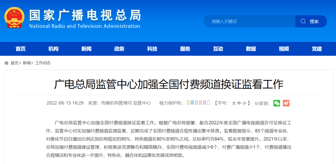 除了对于电视频道精简精办和高质量创新性发展的监督和推进,广电总局在加强全国付费频道换证监看工作也加紧了步伐。