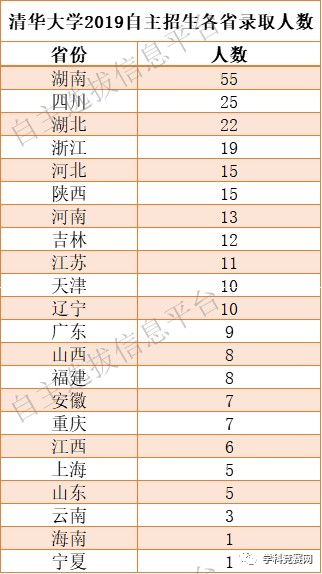 其中,清华大学今年自主招生在湖南录取55人,远超出录取人数第二的四川(25人);