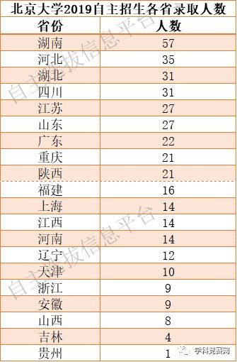 北京大学今年自主招生在湖南录取57人,同样远超出录取人数第二的河北(35人)。