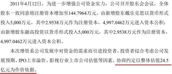 但是在9亿估值融资结束仅仅十几天之后,新丽传媒的估值又向前大踏了一步,上升到了24.5亿元,新进投资人戴乐克思、东融高分别出资5000万元。