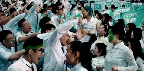 “找工作,直接跟老板谈!找工作,上BOSS直聘!升职、加薪……”一群面目狰狞、举着横幅、脸上涂着类似国旗的图案的“年轻应聘者”,高声呐喊着自己的诉求。世界杯赛事直播前,BOSS直聘的这则广告引发了网友集体“吐槽”。