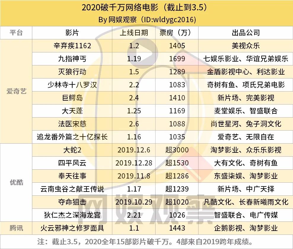 未来肉眼可见的,是内容权重更大,题材类型储备更丰富多元,头部效应、马太效应更加明显。2020网络电影,竞争加速繁荣。