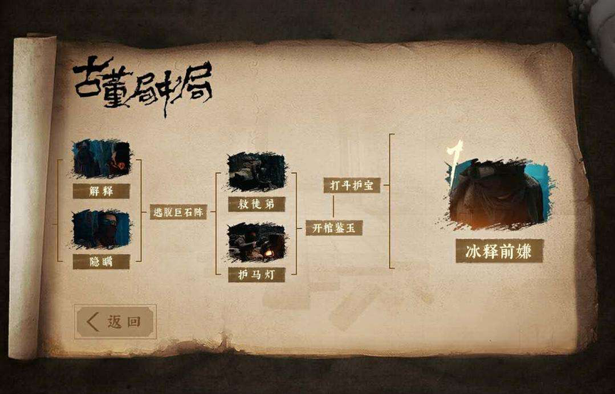 互动剧《古董局中局之佛头起源》围绕着许一诚之前的护宝经历展开,许一诚和徒弟小天一边在墓道中躲避日军的追击,还要想办法通过有机关的路线,至于结局如何和其他互动剧一样,取决于观众在每一个关卡的选择与操作。