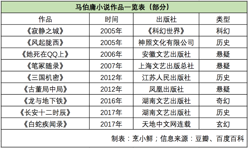 从表格中我们可以看到,后期的大部分作品都是悬疑与历史类型,《长安十二时辰》展现盛唐风云,《风起陇西》和《三国机密》在“三国”背景下展开,《古董局中局》由抗日时期的历史悬案开局,以古董鉴宝为切入点,是读者心中排前三名的作品。包括《她死在QQ上》《白蛇疾闻录》《幽陵道》等作品或已经影视化,或在影视化的路上。