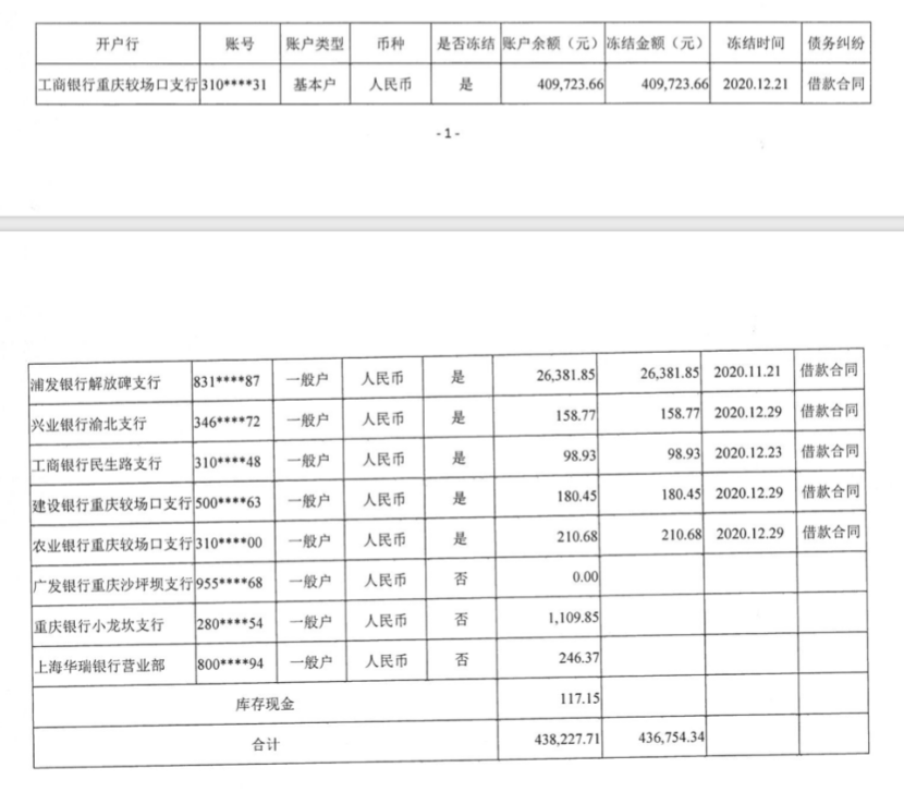 萌梓影视按要求列出了截至2020年12月31日公司银行账户被冻结的详细情况,见下表: