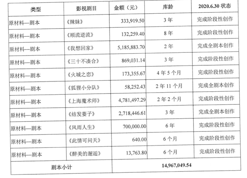 减值准备计提方面,萌梓影视称,公司管理层、财务部相关人员会同影视剧部负责人对剧本项目进行了逐项梳理,对已经完成创作的剧本《我想回家》《结发妻子》《狐狸小分队》符合社会主义核心价值观,题材具有良好的市场需求,在资金筹集到位后可以拍摄;其他剧本在选材方面充分考虑了监管要求和市场需求,在持续创作中。因此,对原材料—剧本结合持有目的、未来拍摄计划、发行计划,不存在明显的减值迹象。