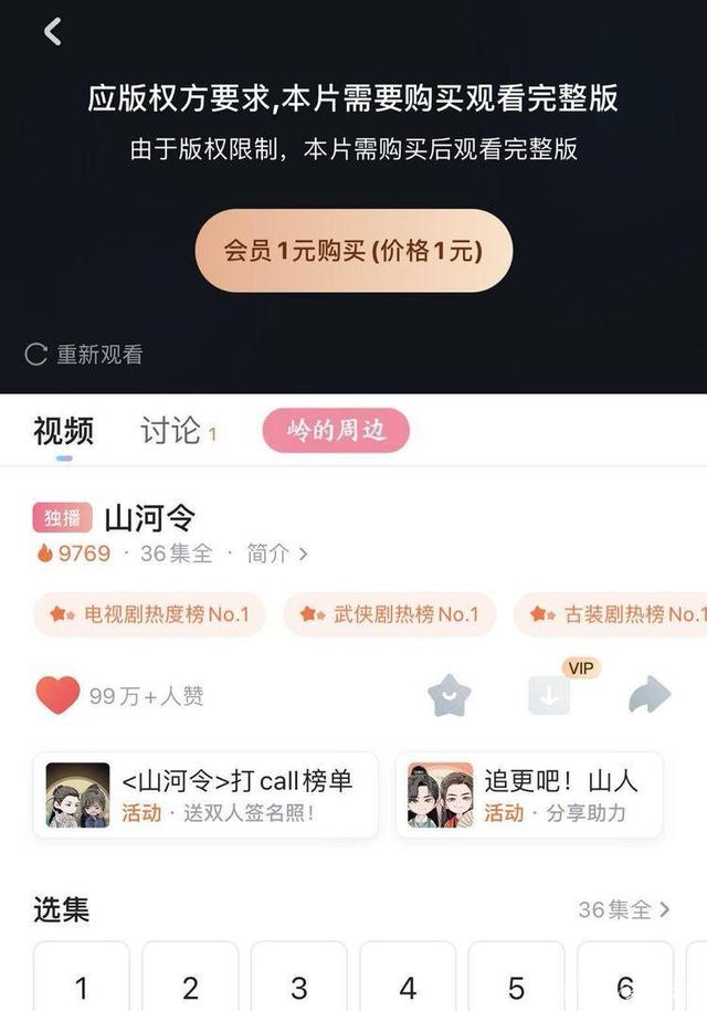 早在《山河令》超前点播收官时,付费彩蛋的出现就曾引发市场热议,不过相比正剧大结局的“天人永隔”,不少人还是愿意花钱买安慰,而这显然只是一次微妙的尝试——当下在优酷平台上,该剧还上线了“付费花絮”,共50集,单集售价1元,不过有时间限制,过期失效。