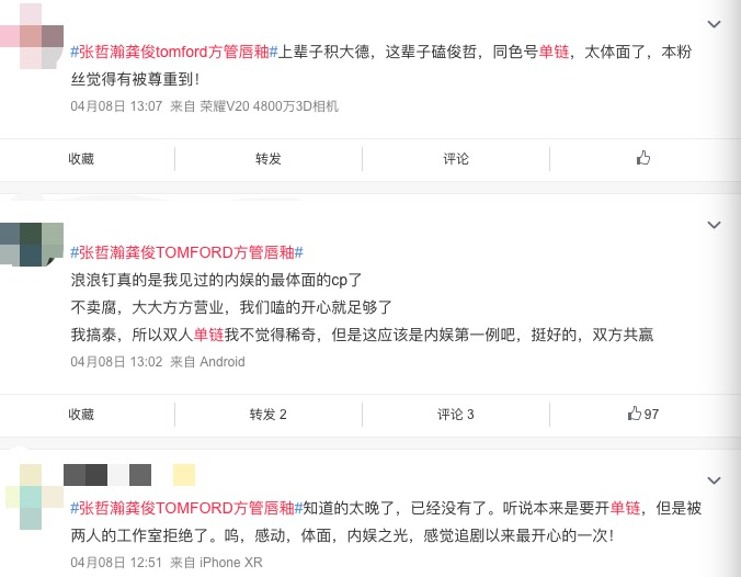 双人代言方面,尤为值得一提的是,和之前的娃哈哈系列不同,近日双人代言的TOMFORD方管唇釉,打破了之前艺人单链battle的情况,只开一个链接的行为牢牢收获了粉丝的心,被力赞“理智和体面”、“让粉丝心甘情愿掏钱”。而立足长远发展来讲,更有大量网友呼吁,“希望《山河令》给内娱开了一个好头”。