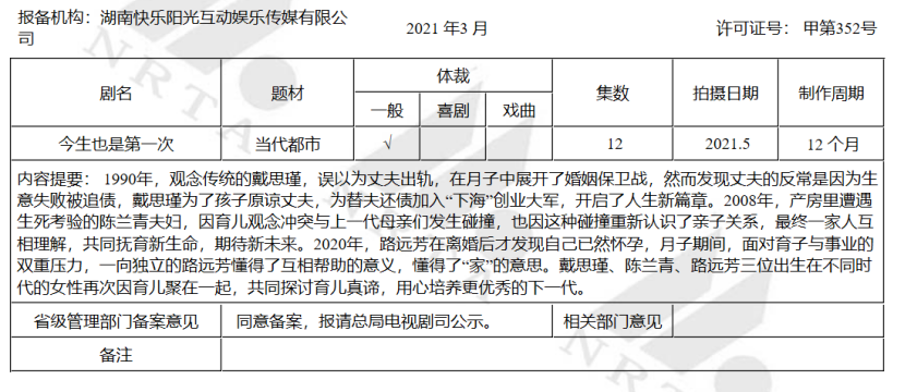 爱奇艺的《初次爱你》讲述医学院临床系大二的学渣女主人公,与学霸恋爱的校园故事;芒果TV的三部备案剧目《今生也是第一次》《婆婆的镯子》《我在他乡挺好的》均为湖南卫视季风剧场预定的12集短剧,均为女性励志题材。