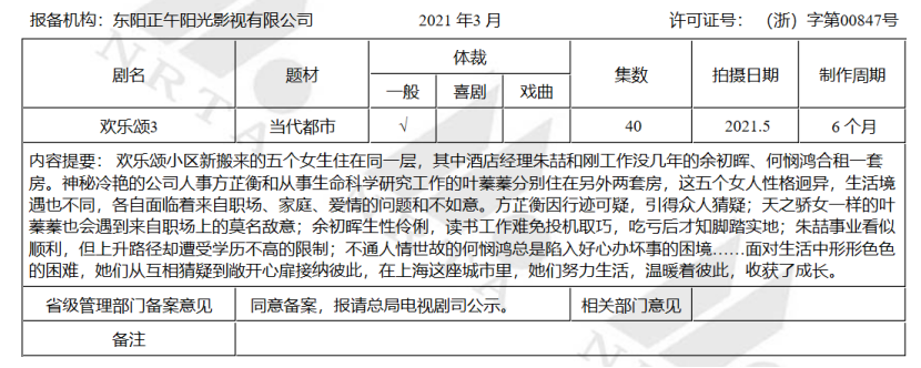 《两个人的森林》由华策旗下剧酷文化备案,讲述一心科研的植物学教授与乡村女孩的爱情故事;正午阳光的《欢乐颂3》讲述五位全新女主人公的生活、情感故事;耀客的《才不要和老板谈恋爱》讲述28岁的律师助理,与顶头上司恋爱的故事。