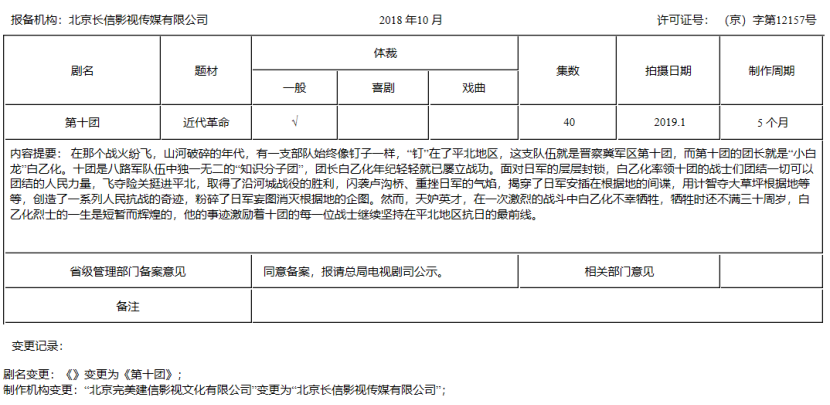 三部重大题材电视剧《牵牛花开》《浴血荣光》《光武中兴》,也已通过备案。