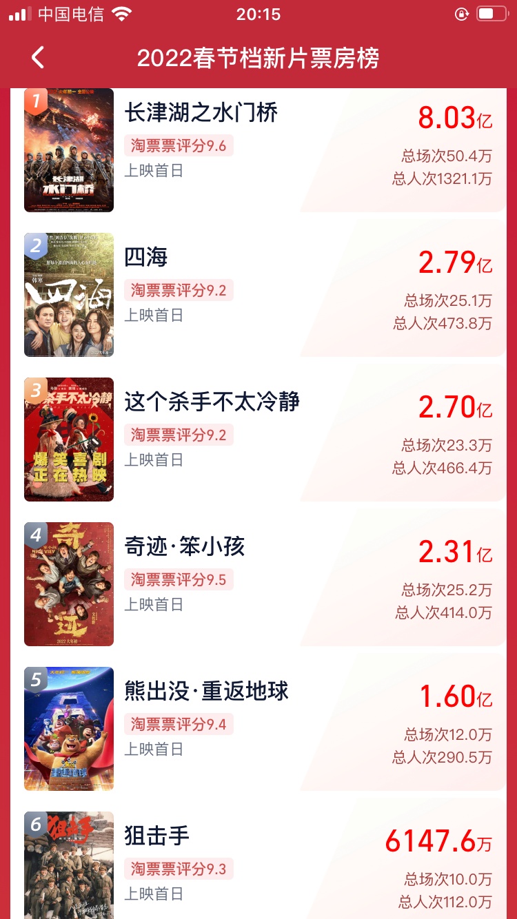 “今年整体票价提升不少,一方面带动了春节档总票房的提升,但也造成了观影人次的减少。”李言鲁坦言。关于观影人次的减少,李言鲁认为,因为2021年就地过年政策观影人次较高,而今年回乡过年的较多。“不过最大的变化,是以前的春节档都是合家欢的喜剧片和商业片为主,今年是主旋律影片领跑。”