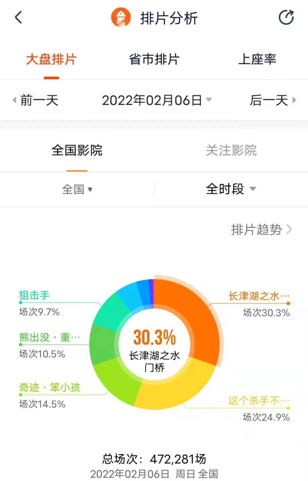 截至2月6日晚,春节档票房超60亿元,与疫情前2019年春节档同期水平相当。在市场格局上,今年春节档延续了去年和2016年的“超级头部”阵型,《水门桥》这样的头部大作占据档期40%以上票房。