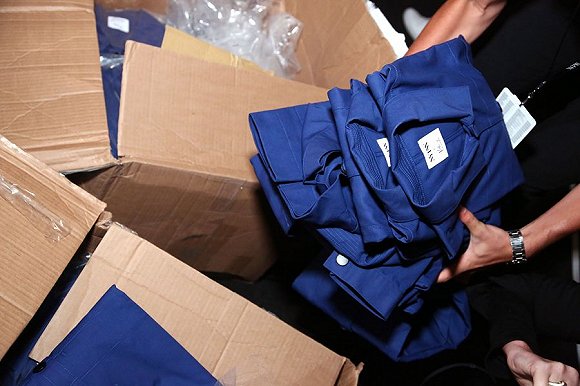 当然,这季纽约时装周上摄影师们纪念款蓝夹克并不法国制造,它们是由IMG与室内产品设计集团Villency Design Group联合制造的。