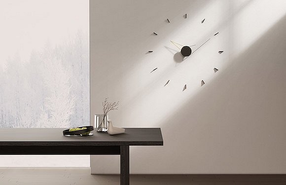 由于指针造型奇特,这个钟在不同的时间都会呈现不同的面貌,无时无刻都在为空间创造新的美。