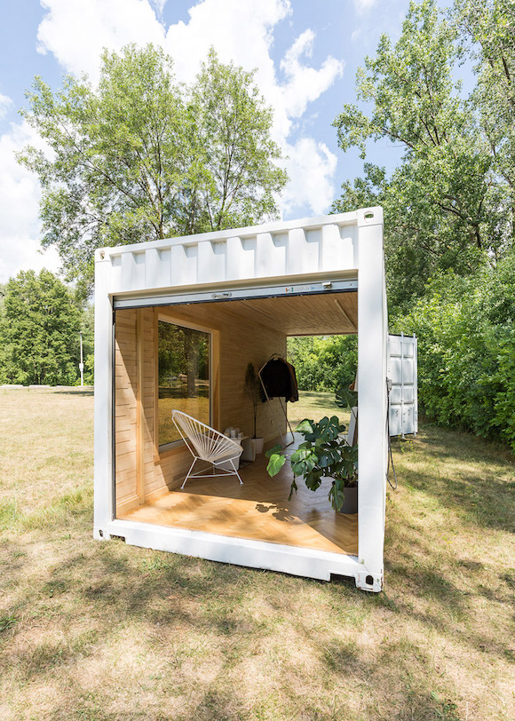 不过店铺没有开在热闹的商业区或是潮人聚集的文化娱乐中心,反而开在了多伦多富人区The Kingsway的一片森林里。而且店铺的建筑也挺特别,不是钢筋水泥混凝土的常规房屋,也不是看上去和森林更搭的小木屋,而是一个被改造过的集装箱。