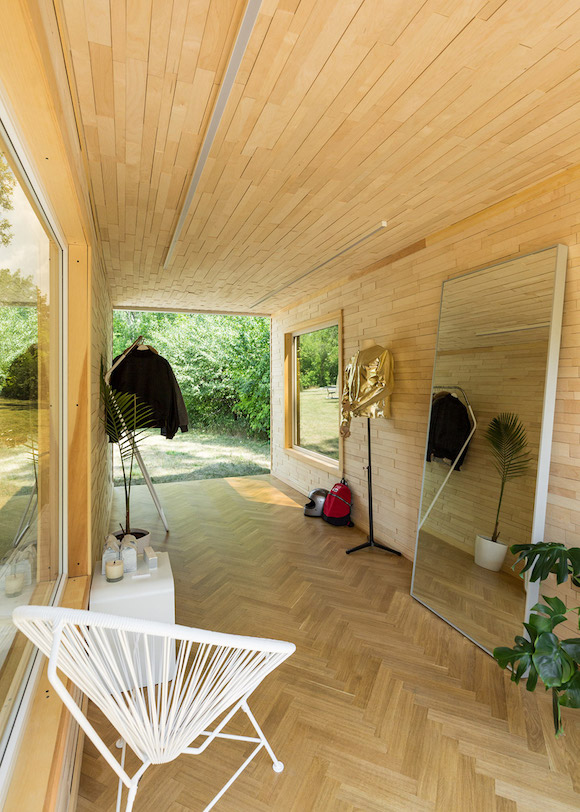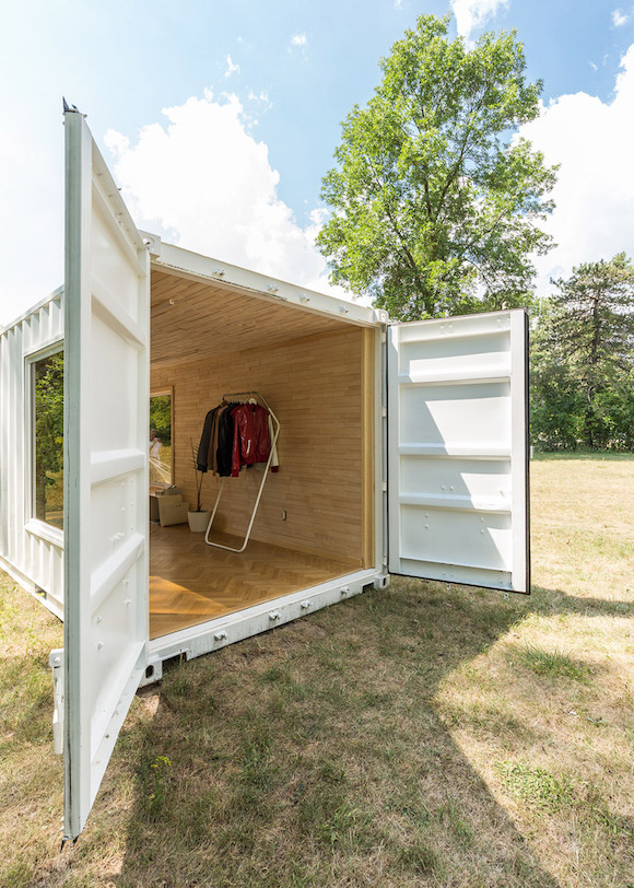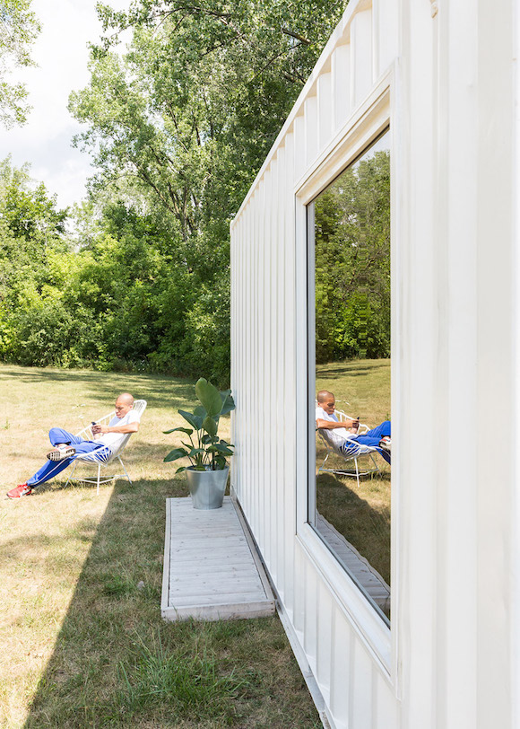 此处窗户的设计值得特别一说。窗户采用了镜面玻璃,从内里看,可以看见窗外的风景,而从外面看,整个窗户就是一面镜子,映射出周边的森林美景,让整个集装箱和周边环境巧妙地融合在了一起。